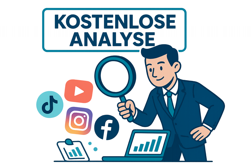 Erhalten Sie eine unverbindliche Analyse Ihrer aktuellen Social-Media-Strategie. Wir prüfen Ihre Stärken, Potenziale und zeigen Ihnen konkrete Maßnahmen, wie Sie Reichweite und Sichtbarkeit steigern können – kostenlos und ohne Verpflichtung.